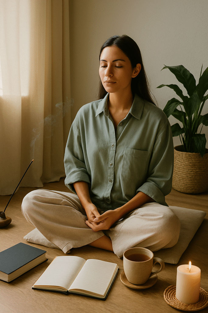 Você não precisa de um altar sofisticado ou de uma sala exclusiva para meditar. Um canto simples, limpo, silencioso e aconchegante já é suficiente. O que importa é que esse local converse com sua alma e convide ao recolhimento.